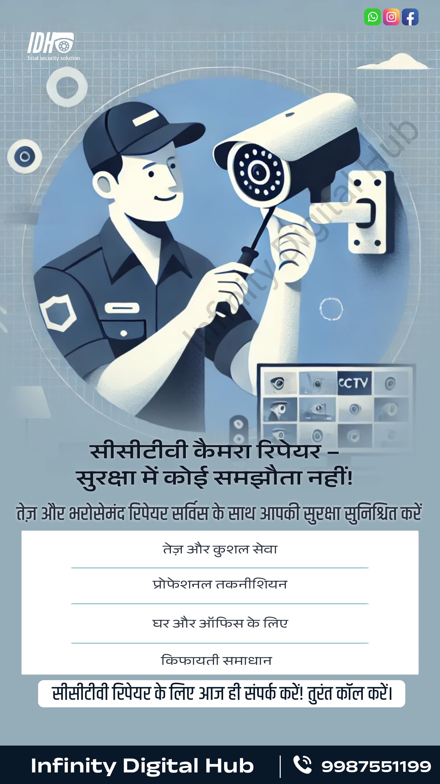 Infinity Digital Hub is your trusted partner for advanced security and communication solutions. We specialize in the installation, maintenance, and AMC of CCTV cameras, access control systems, video door phones, intercoms, EPABX, and attendance systems.